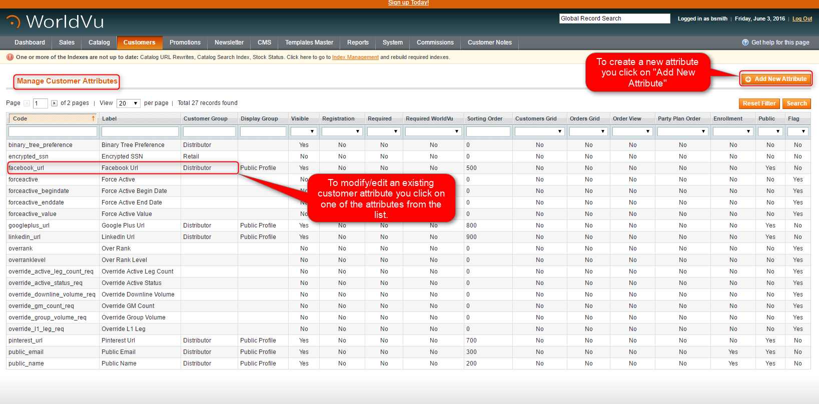 Summary: This training will provide instructions that will guide you through the process needed to edit/create “Customer Attributes”, manage each attribute’s relation to key data and manage the group that attribute is assigned to as well as create new attribute groups.